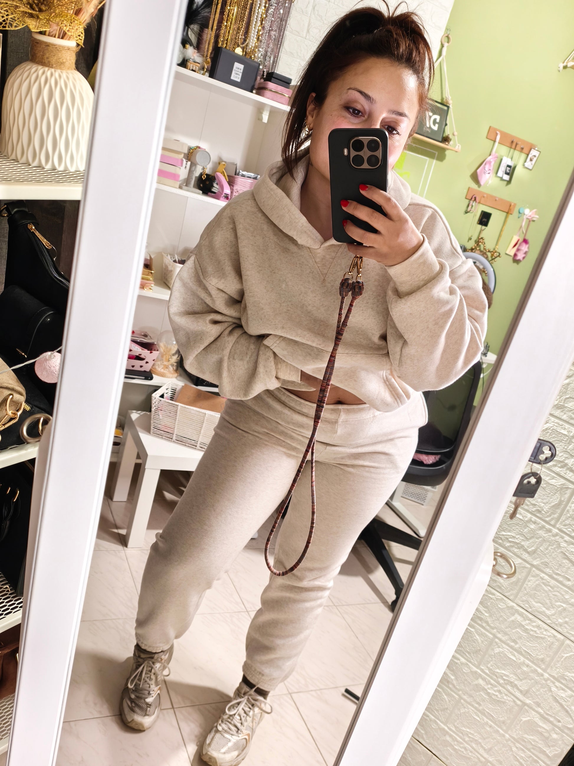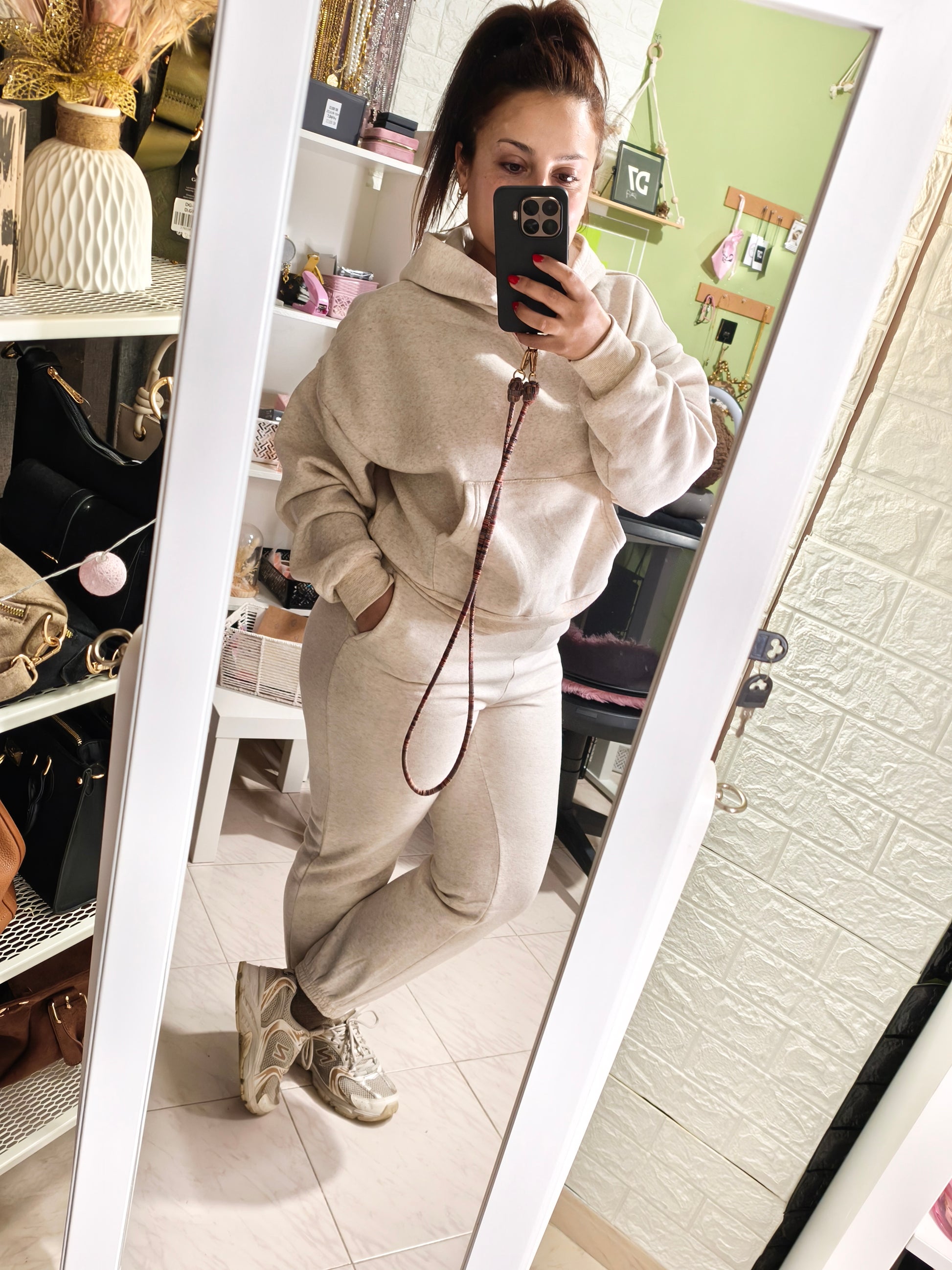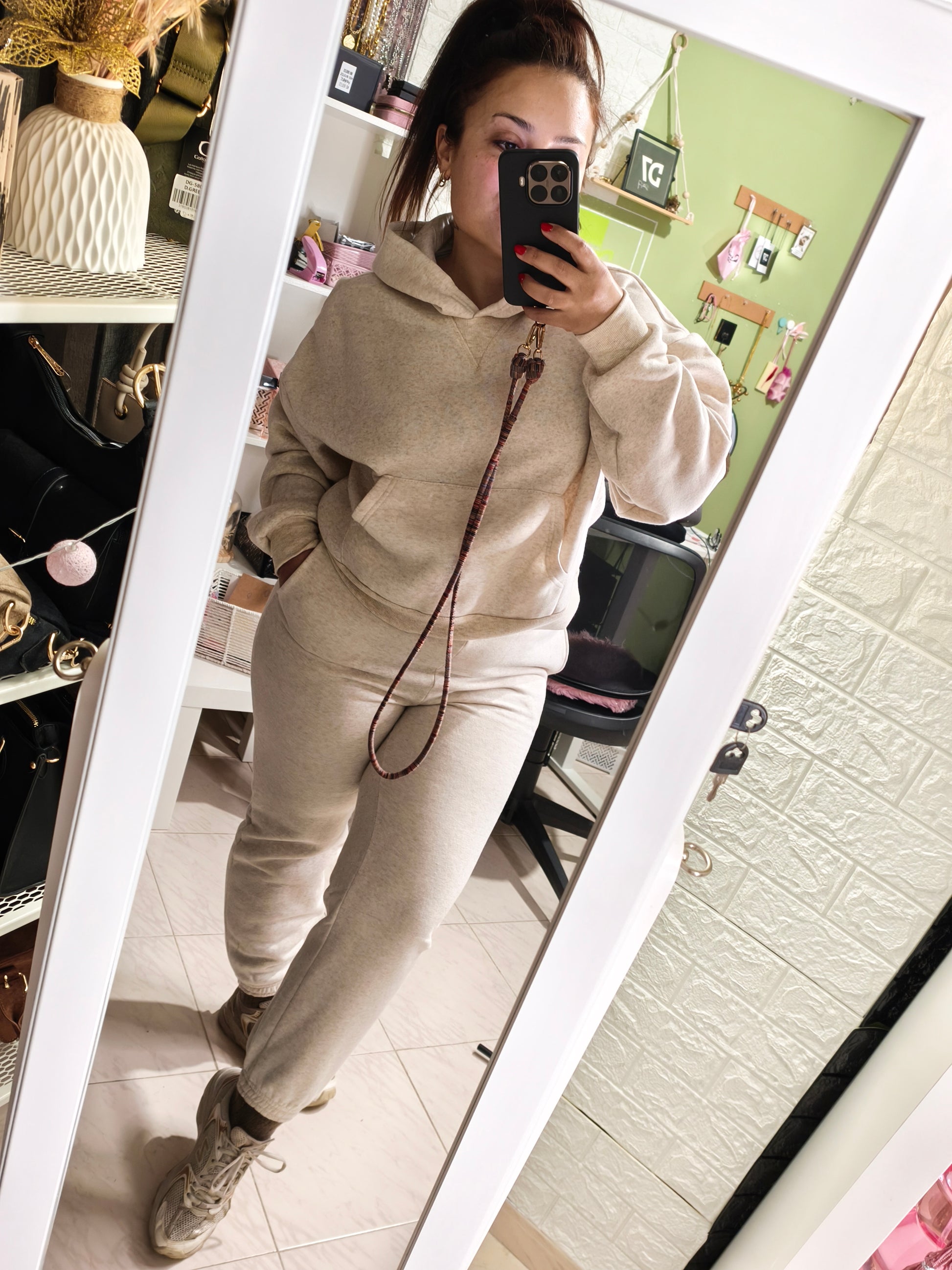 Este moderno conjunto de dos piezas en color beige jaspeado es perfecto para el día a día. Con un corte holgado, es cómodo y elegante al mismo tiempo. Disfruta de estilo y comodidad con el Conjunto Arena.