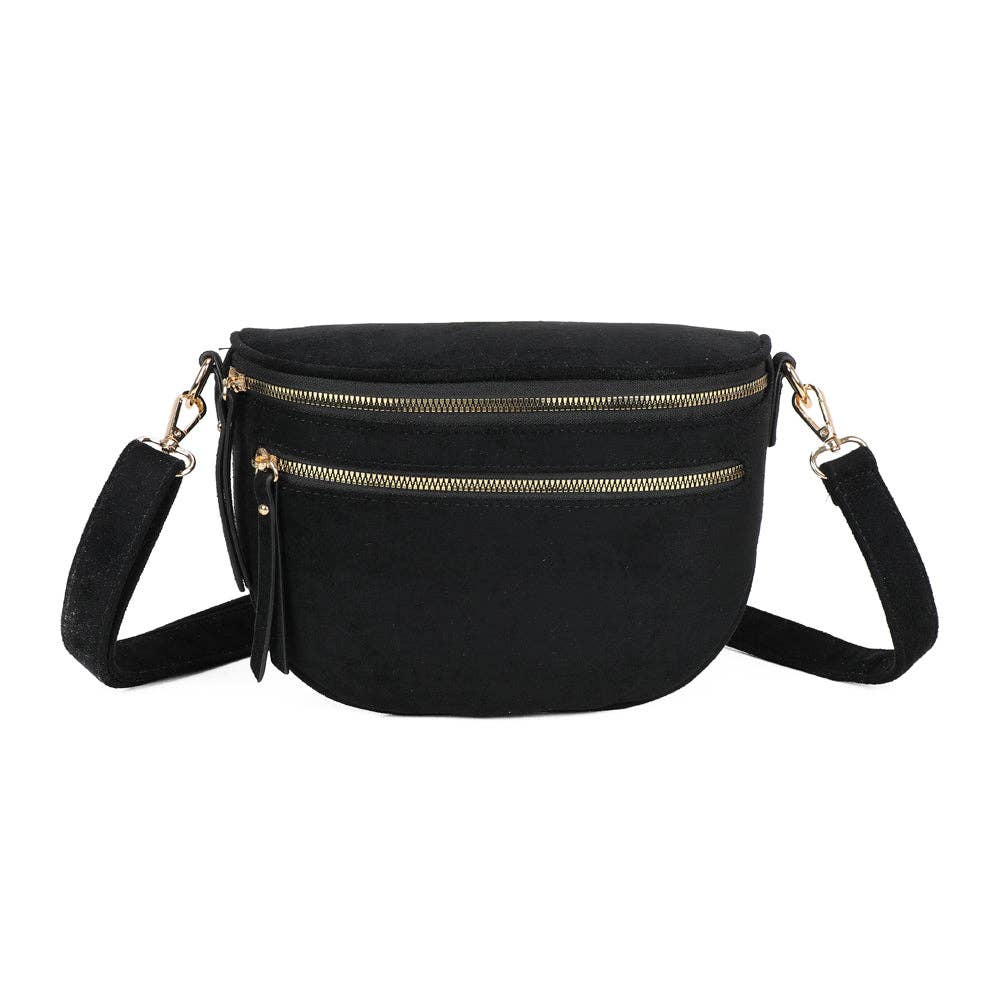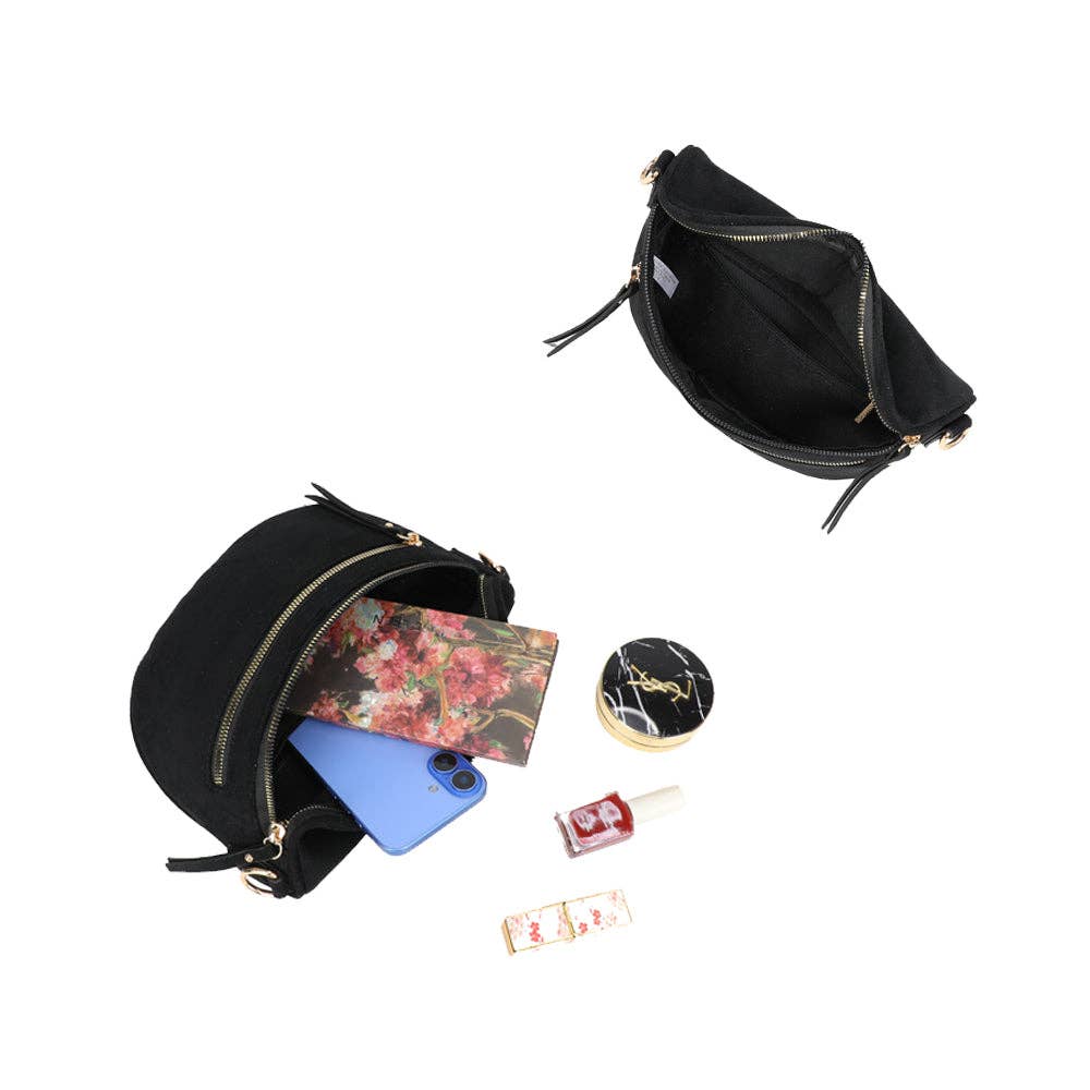 Equipado con dos bolsillos con cremallera en la parte delantera y un compartimento principal espacioso, permite organizar fácilmente tus esenciales: teléfono, cartera, maquillaje o llaves. Su correa ajustable asegura un uso cómodo, ya sea cruzado o al hombro.