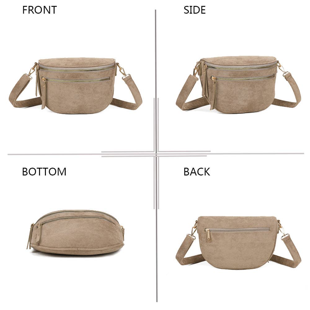 Equipado con dos bolsillos con cremallera en la parte delantera y un compartimento principal espacioso, permite organizar fácilmente tus esenciales: teléfono, cartera, maquillaje o llaves. Su correa ajustable asegura un uso cómodo, ya sea cruzado o al hombro.