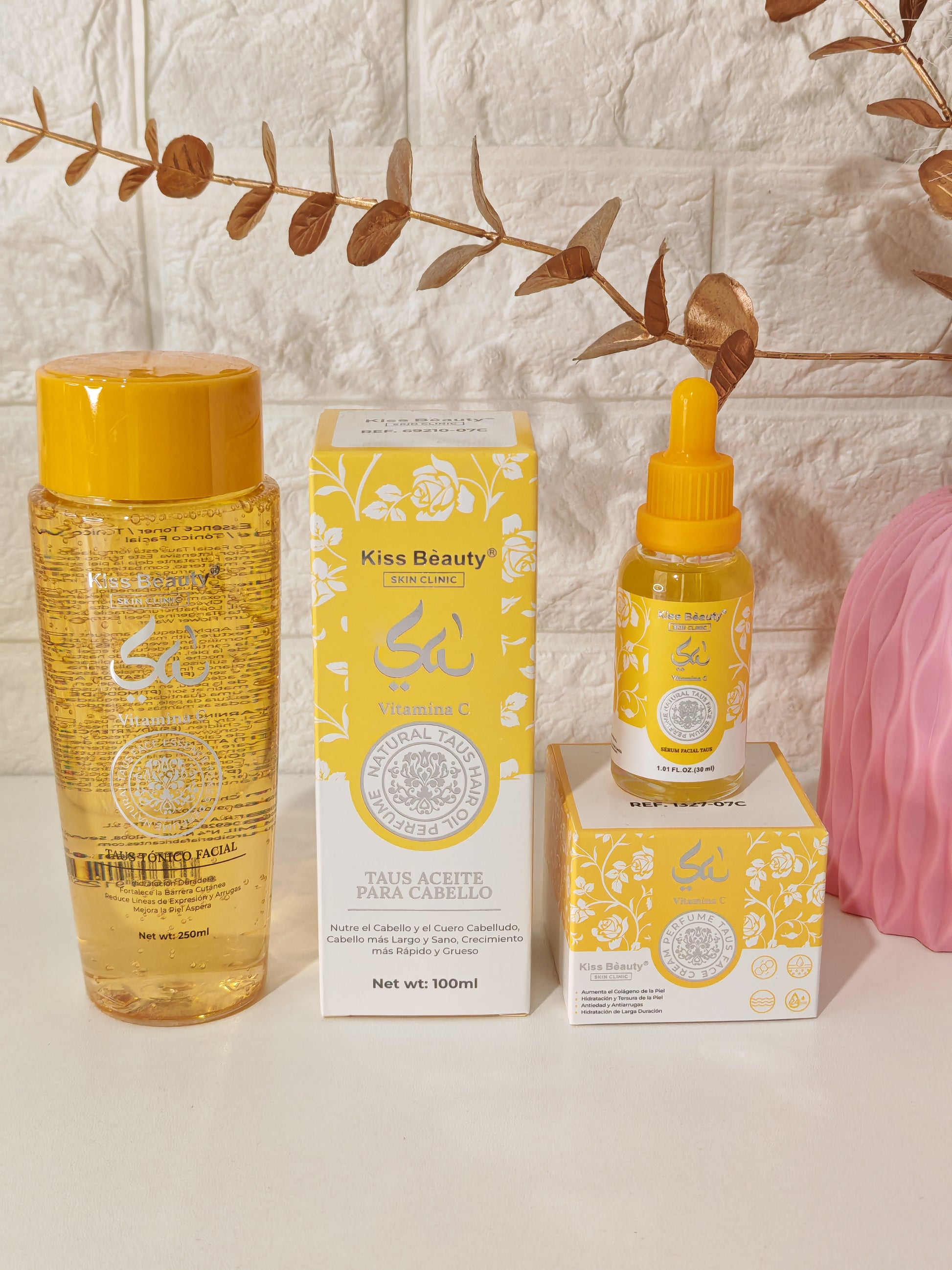Contiene aceite capilar, crema facial Vitamina C, sérum con vitamina C y tónico facial.
