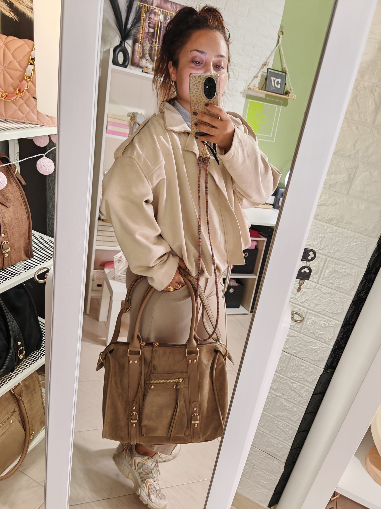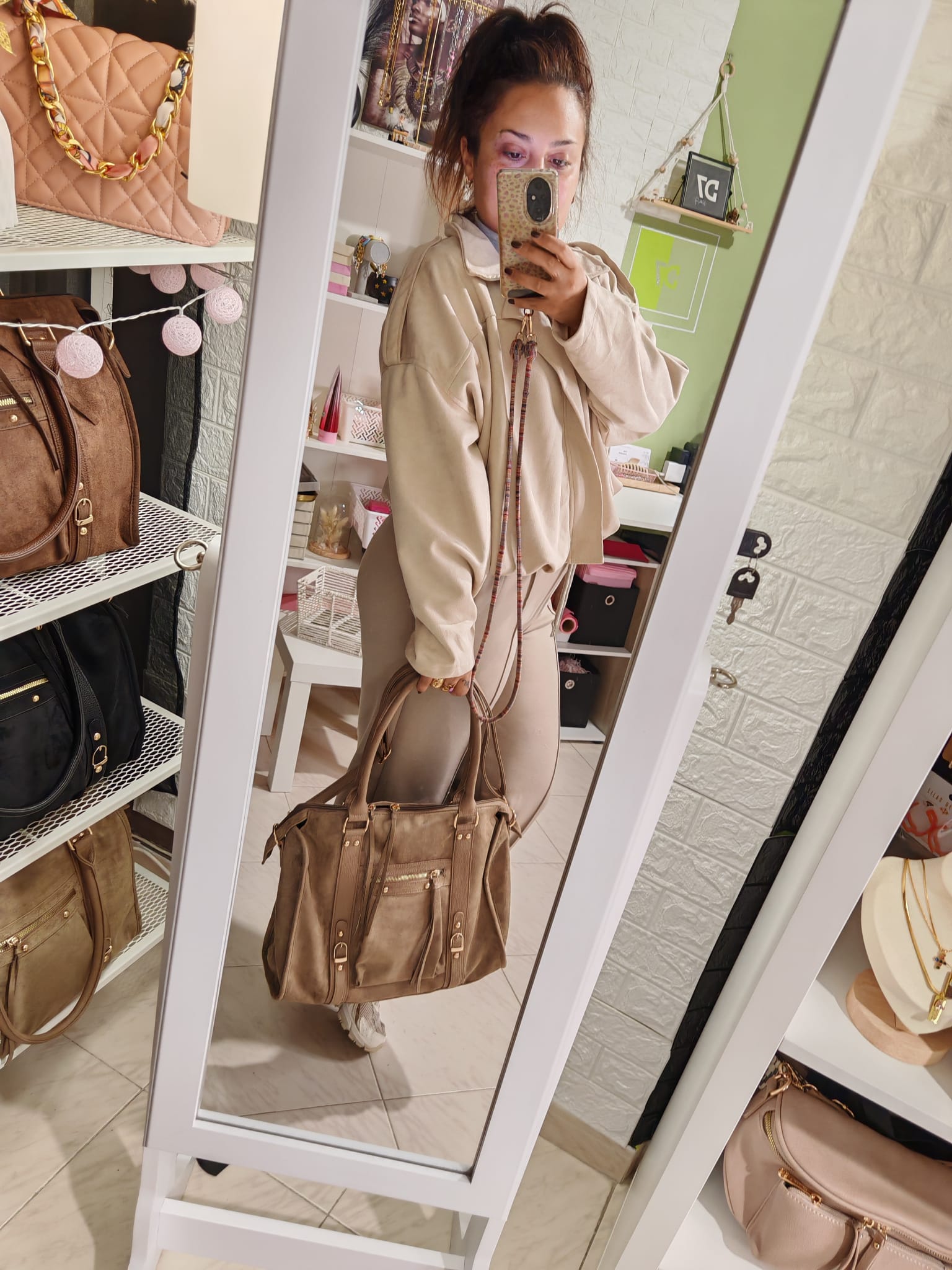 Elegante y espacioso, el Skyla Suédine Grande combina estilo moderno y practicidad diaria. Diseñado en un material de gamuza suave y refinado, se distingue por sus acabados cuidadosos, sus asas cómodas y sus detalles metálicos que aportan un toque contemporáneo.