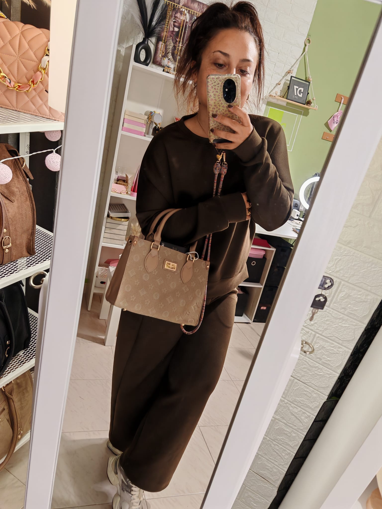 El Victoria combina con destreza la textura aterciopelada de la gamuza con la estructura elegante del cuero sintético. Su diseño refinado, adornado con un motivo discreto y acabados dorados, le confiere un encanto atemporal. Práctico y elegante, se puede llevar en la mano, al hombro o cruzado gracias a su correa ajustable, ofreciendo al mismo tiempo un interior espacioso para tus esenciales. Detalles: * Dimensiones: 25 × 11,5 × 19 cm * Altura de las asas: 10,5 cm * Peso: 0,58 kg * Material: Cuero sintético + gamuza estampada * Cierre: Cremallera superior * Llevar: Mano, hombro o cruzado Un compañero elegante para quienes desean combinar estilo y practicidad en el día a día.