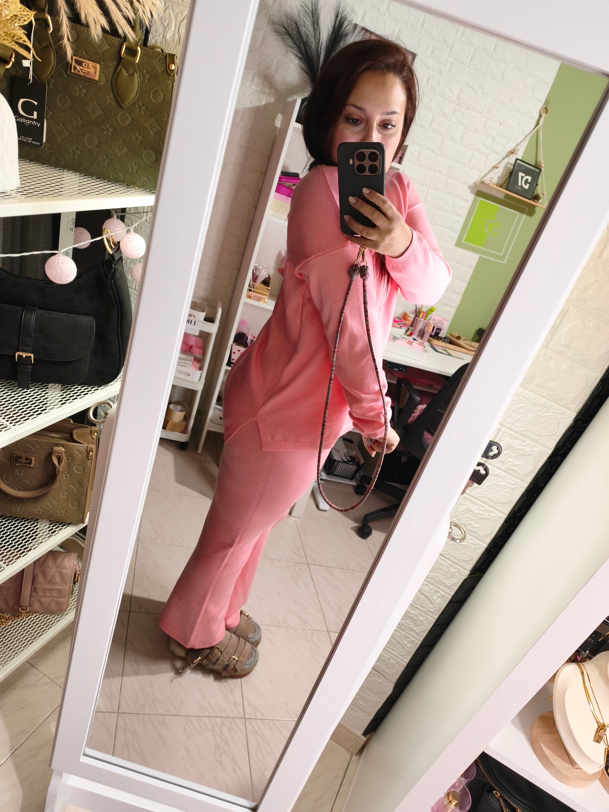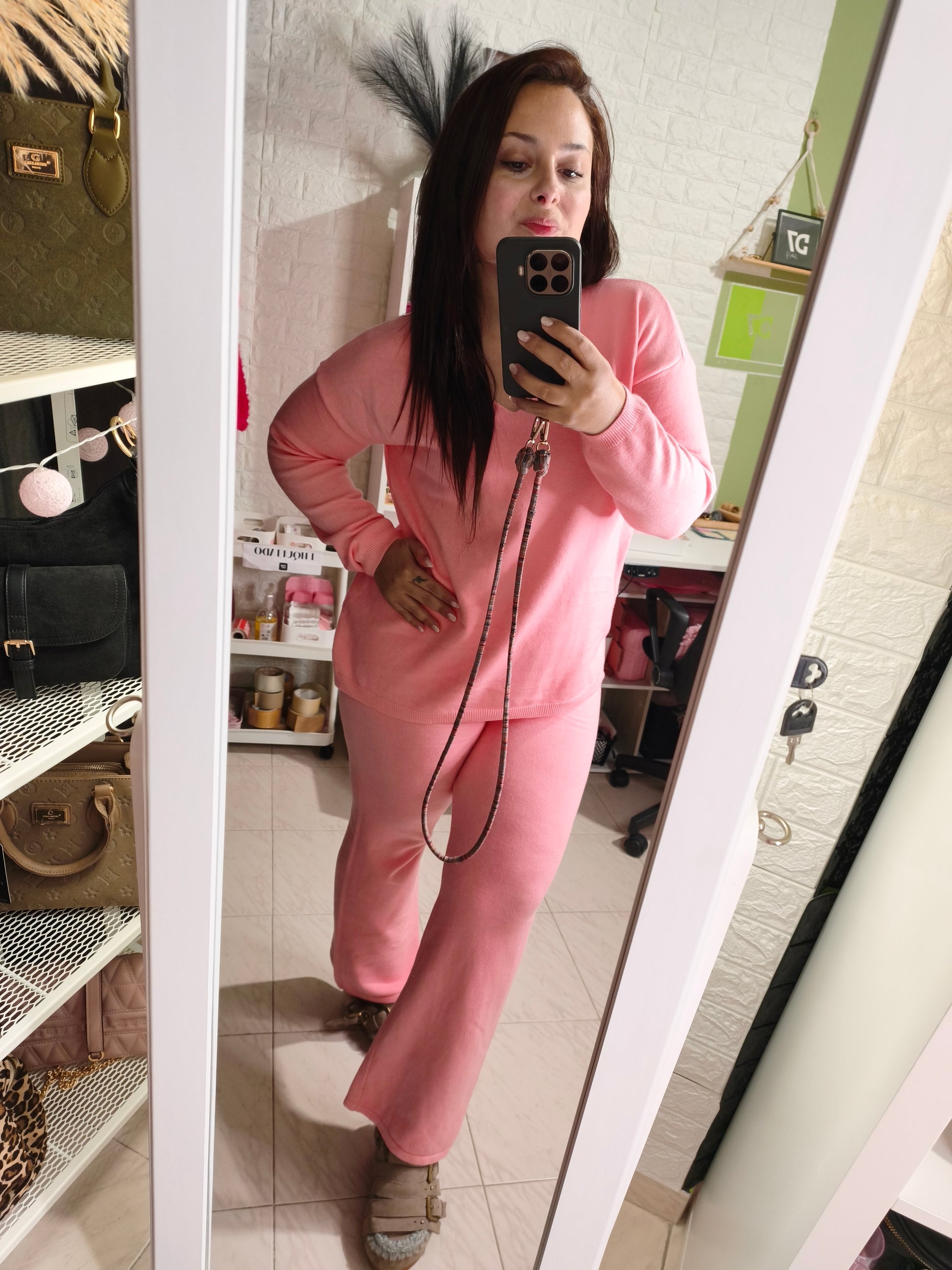¡Este Conjunto Dulce AMY es perfecto para cualquier ocasión! Confeccionado con punto de alta calidad en un hermoso tono rosa, es ideal para llevarlo con un abrigo en invierno o sin nada en primavera. Además, ¡su talla única se ajusta hasta una 44! ¡No te lo pierdas!