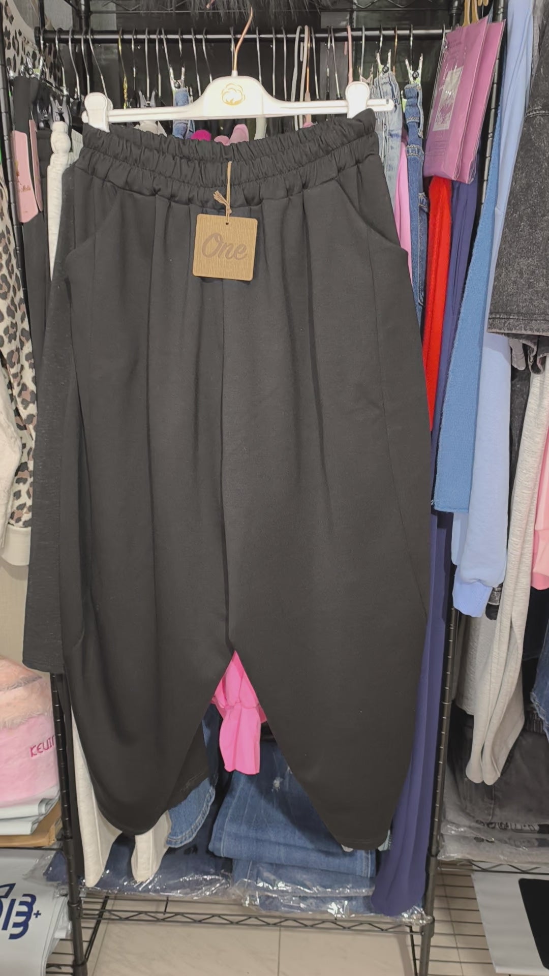 Pantalón con goma en la cintura que llega hasta una talla 44.