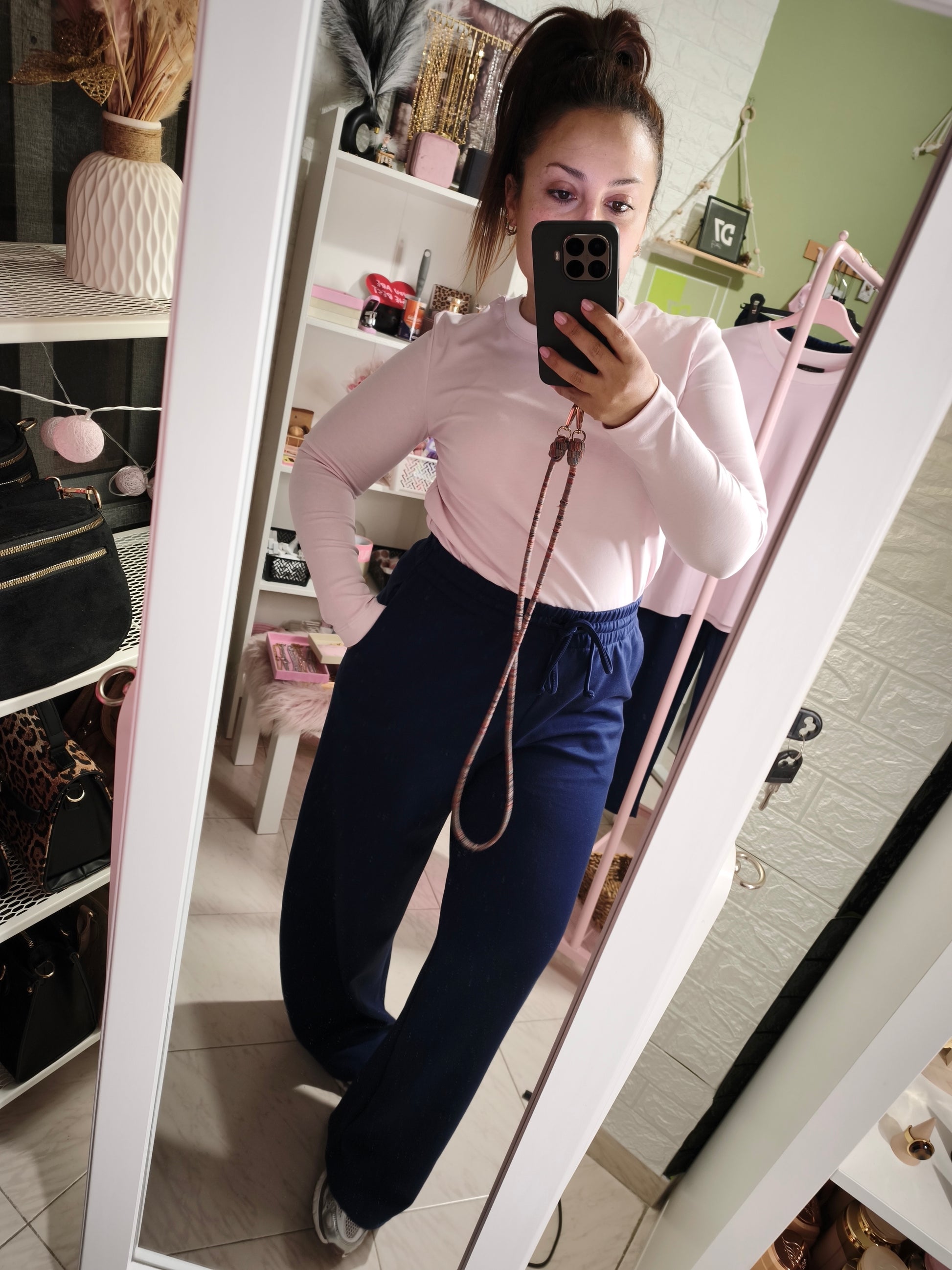 Aunque están inspirados en el estilo chándal, su diseño cuidado y su elegante color marino permiten llevarlos también en looks más arreglados, convirtiéndolos en una prenda versátil y fácil de adaptar a cualquier momento del día.
