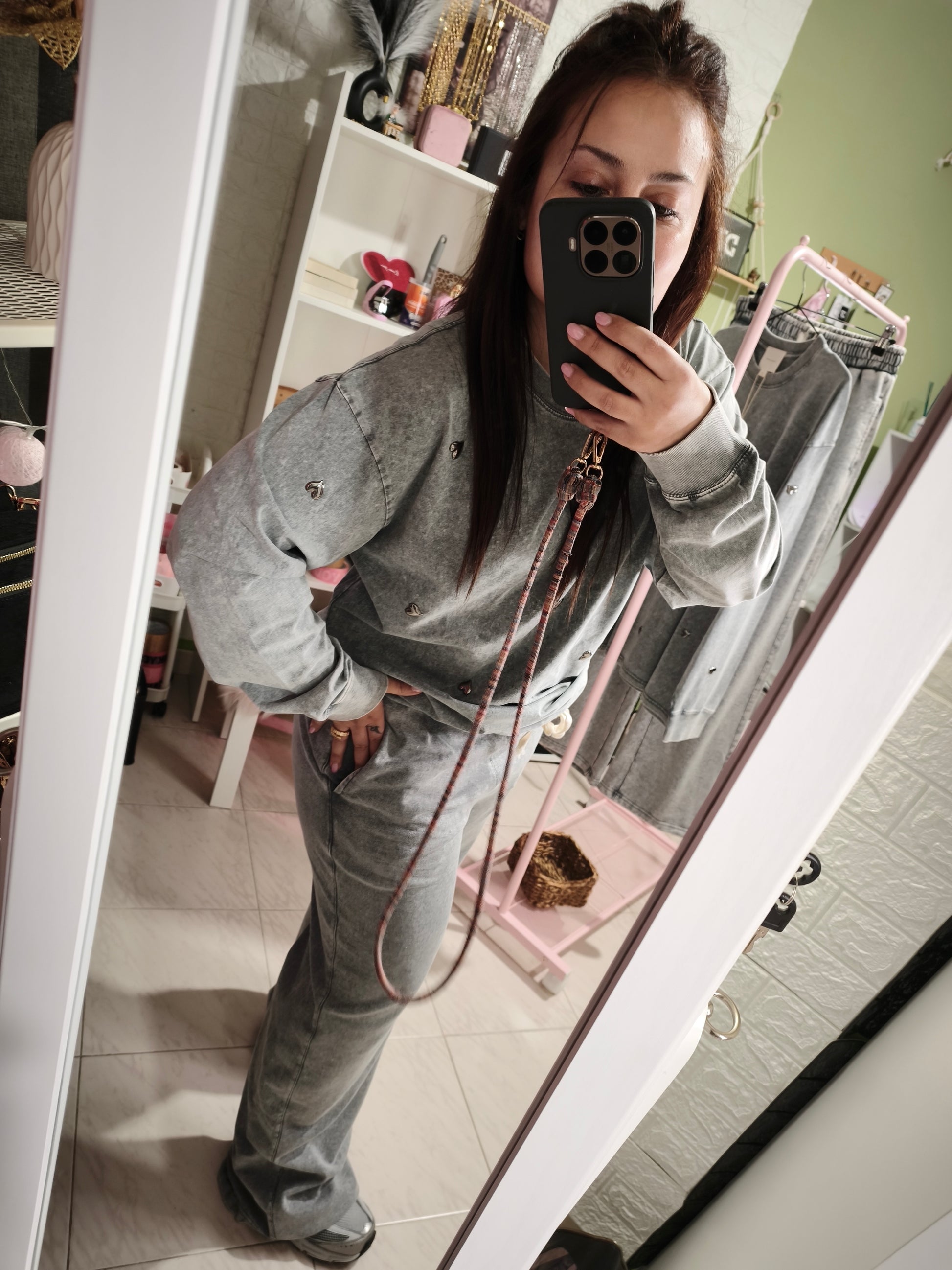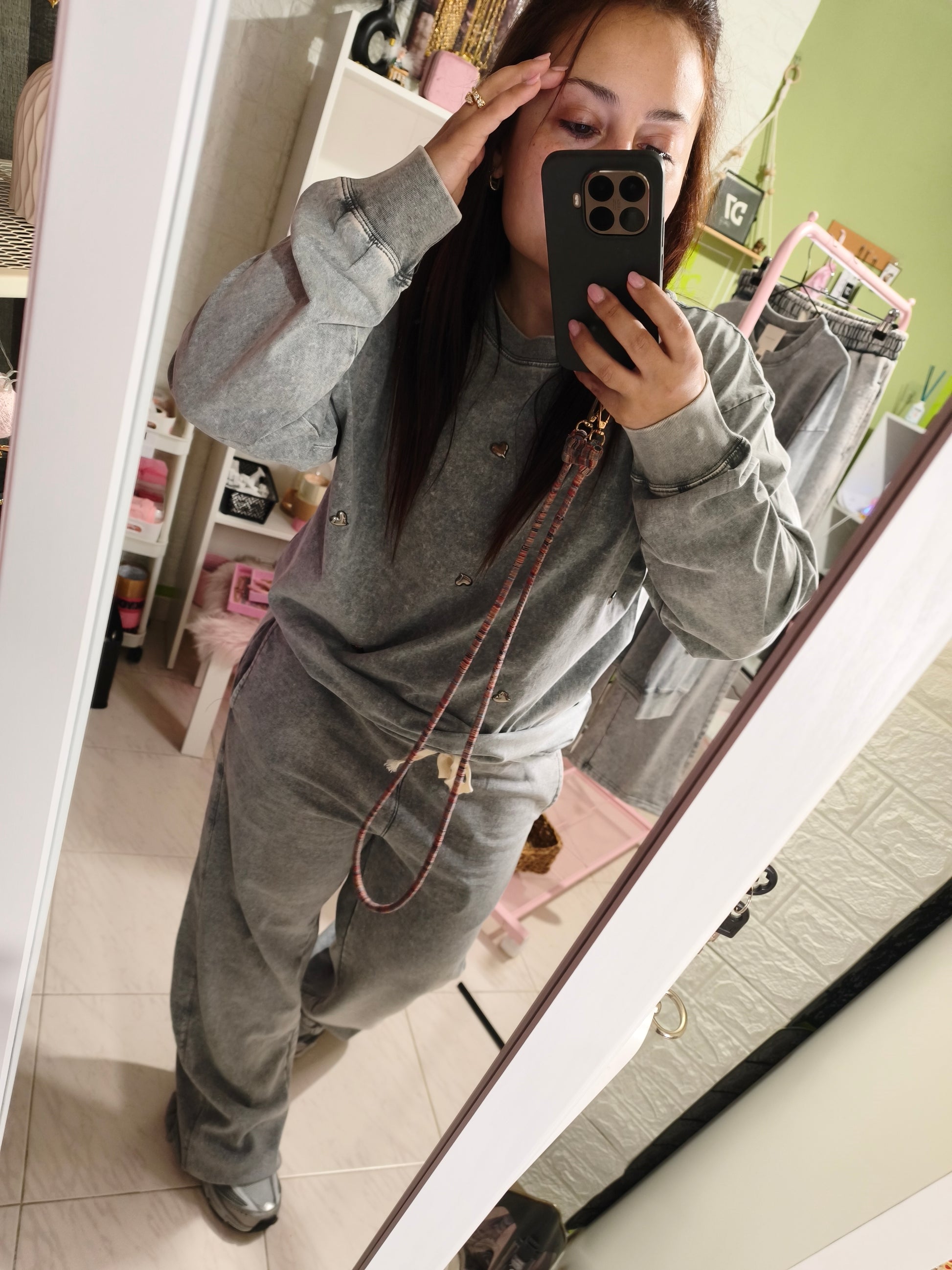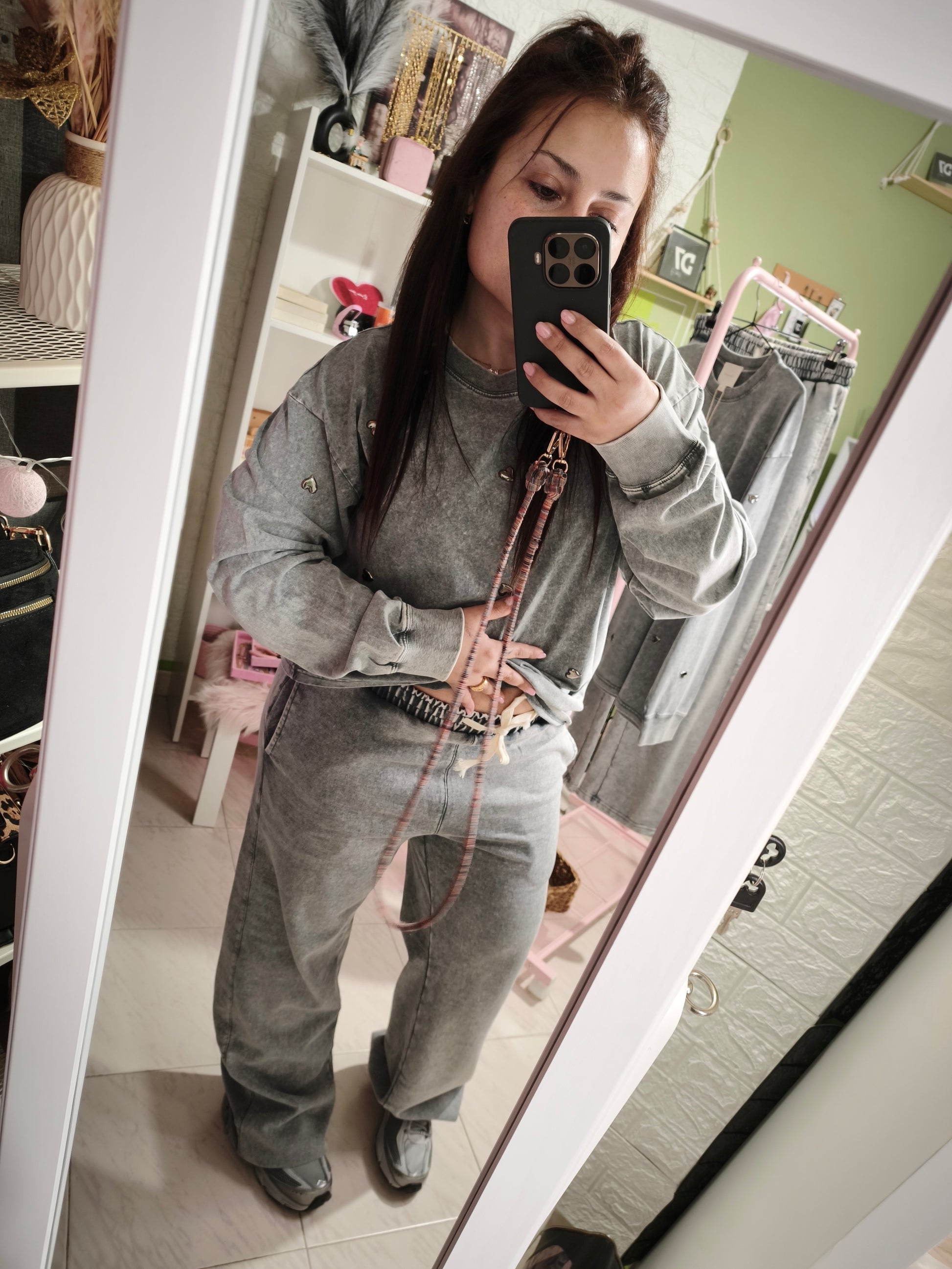 La Sudadera Alma es perfecta para crear looks casuales con un aire urbano y moderno. Su corte holgado la hace ideal para llevar con jeans, leggings o pantalones cómodos, aportando siempre un toque original gracias a sus detalles en tachuelas.