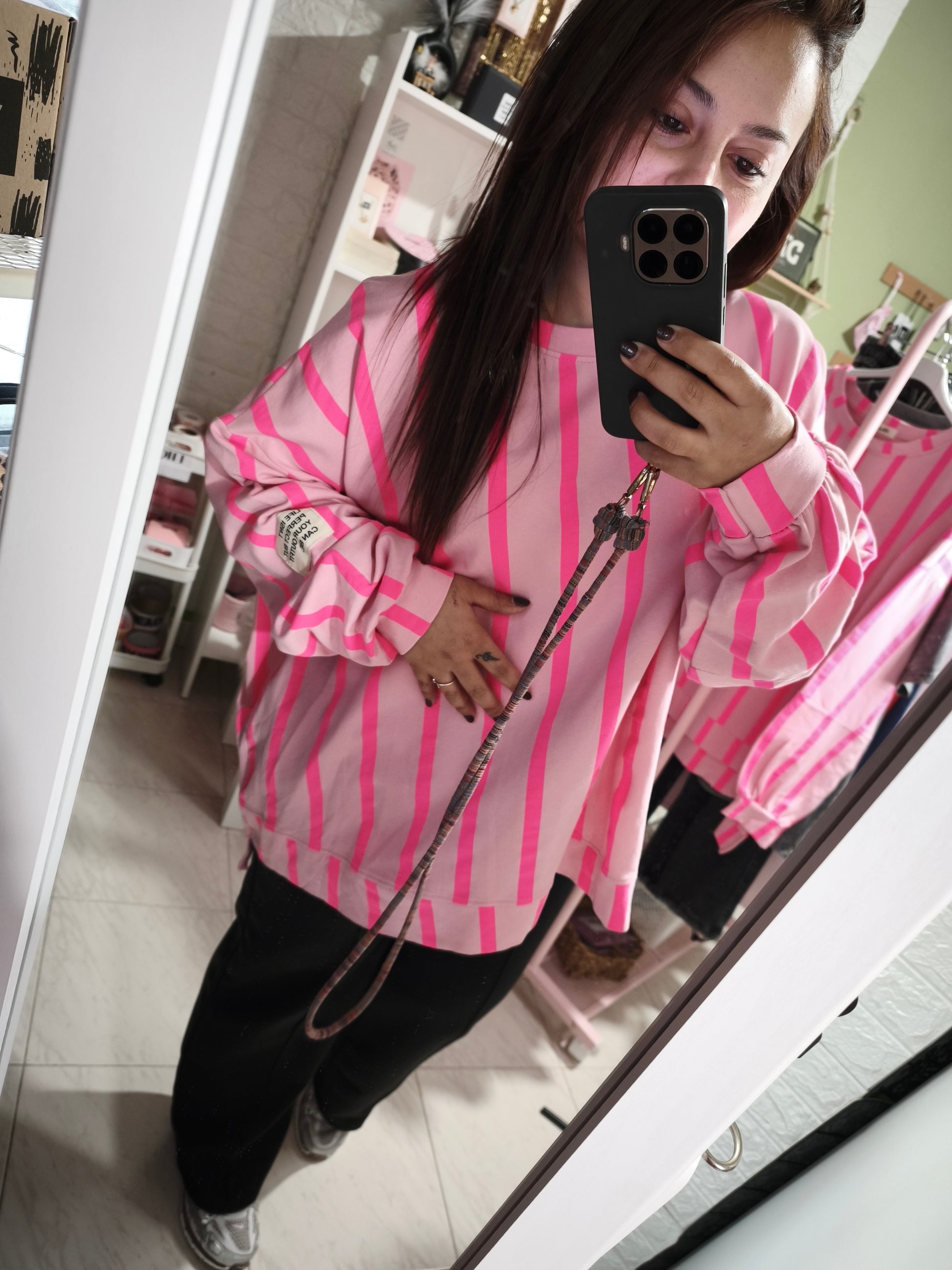 Sudadera Oversize con líneas en tonalidades flúor.